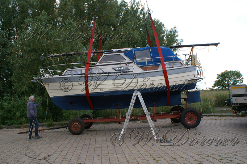 Montag den 08. Juni 2020 fuhren wir wieder nach Norden, diesmal nach Rechtenfleth wo um 15:00 Uhr ein Kranwagen kam um das Boot ins Wasser zu setzen. Der Verkäufer hatte das Boot in der Zwischenzeit