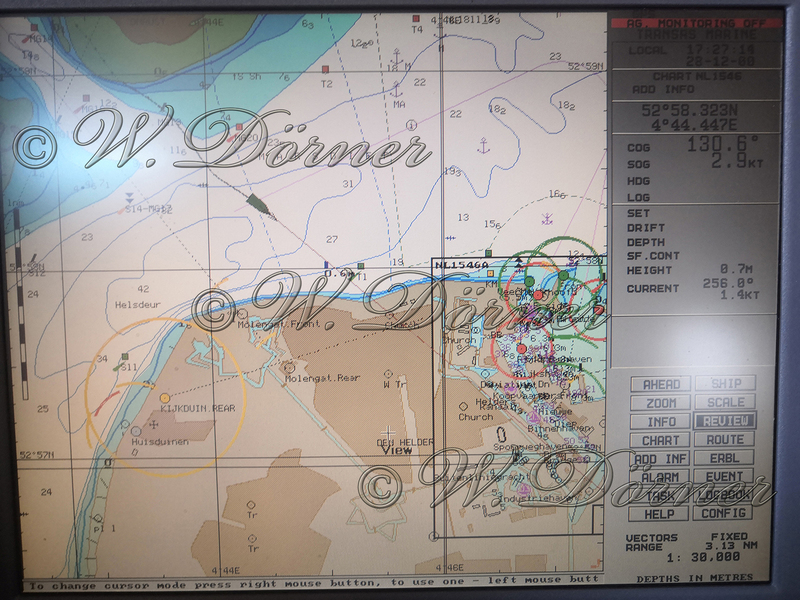 Um 14:00 Uhr UTC erreichten wir das „MG“ Fahrwasser, welches sehr nahe am Ufer von Texel vorbeiführt. Das Wasser hatten wir immer noch gegenan. Nach 2 Stunden machten wir in DEN HELDER fest. Hier