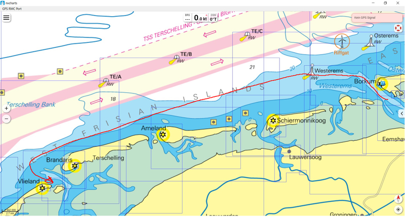 Um 16:00 Uhr UTC erreichten wir die Untiefen nördlich von Terschelling die wir nordwestlich
