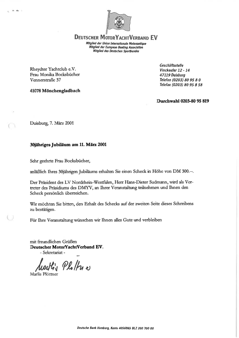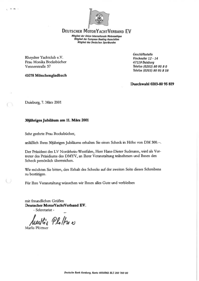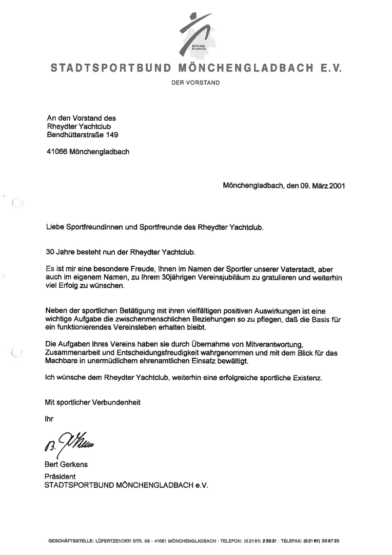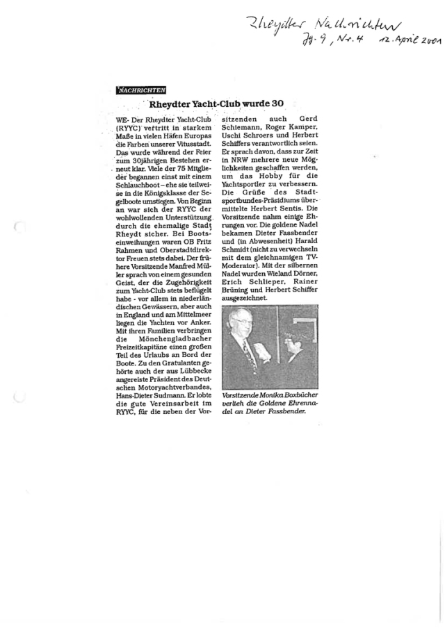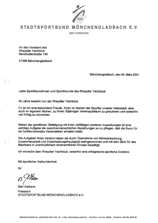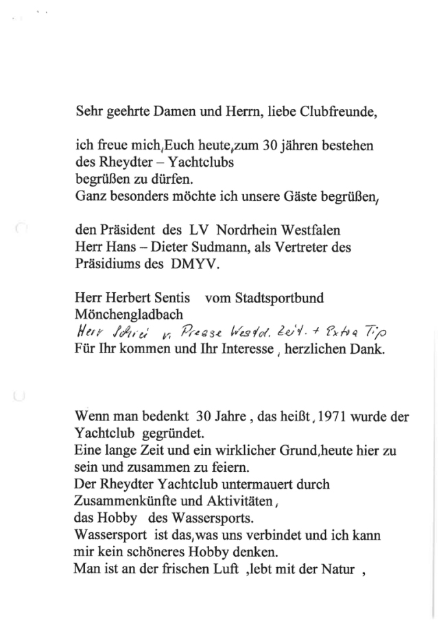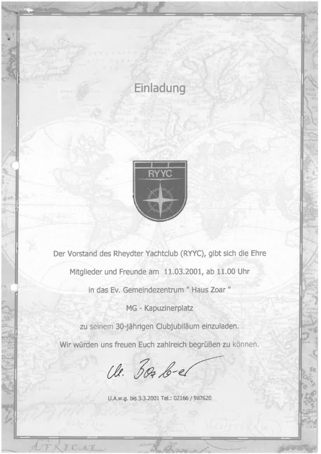 Zum 30 jährigen bestehen des Rheydter Yachtclub RYYC wurde ein Sektempfang im Haus ZOAR auf dem alten Markt in Mönchengladbach