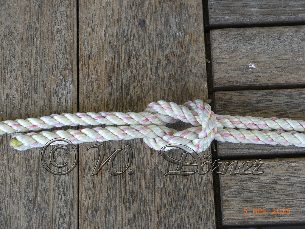 Dieser Knoten dient nur zur kurzfristigen Befestigung. Er löst sich gerne bei wechselnder Belastung.