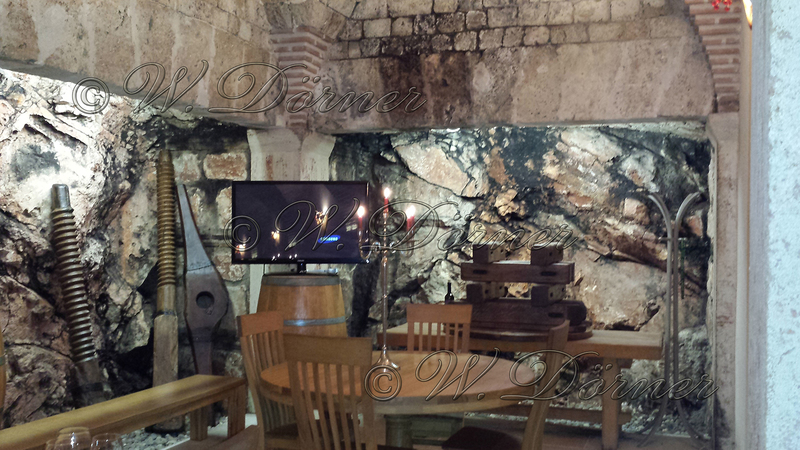 Am nächsten Tag segelten wir auf die andere Seite der Insel Hvar. In einer Bucht im Norden der Insel gehen wir vor Anker und schwimmen. Wind W 1-2 . Später segelten wir nach Jelsa mit plötzlich aufkommende Winde aus W 4-5. Im Hafen direkt vor dem Restaurant parkten wir das 15,50m und 5 m breite Schiff. Die Hotel / Restaurant Besitzerin hatte uns zum Abendessen eingeladen. Vorher ging es noch in die Berge zu einer Weingut Besichtigung mit Weinprobe. Da hatte wohl einer dem Jürgen etwas gutzumachen. Für uns war es ein Highlight.