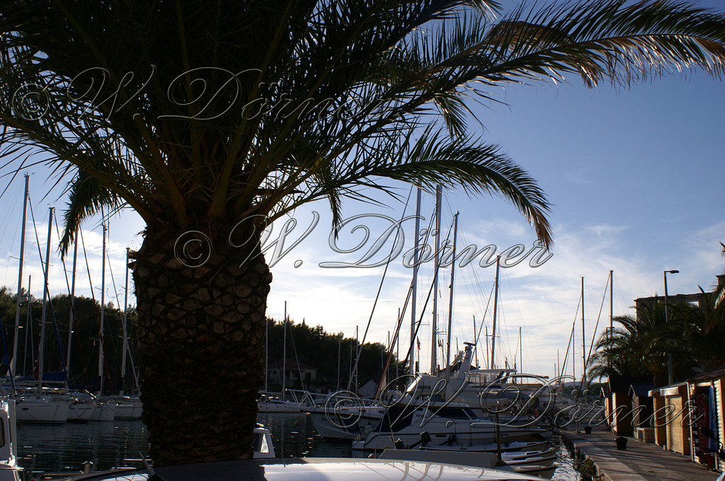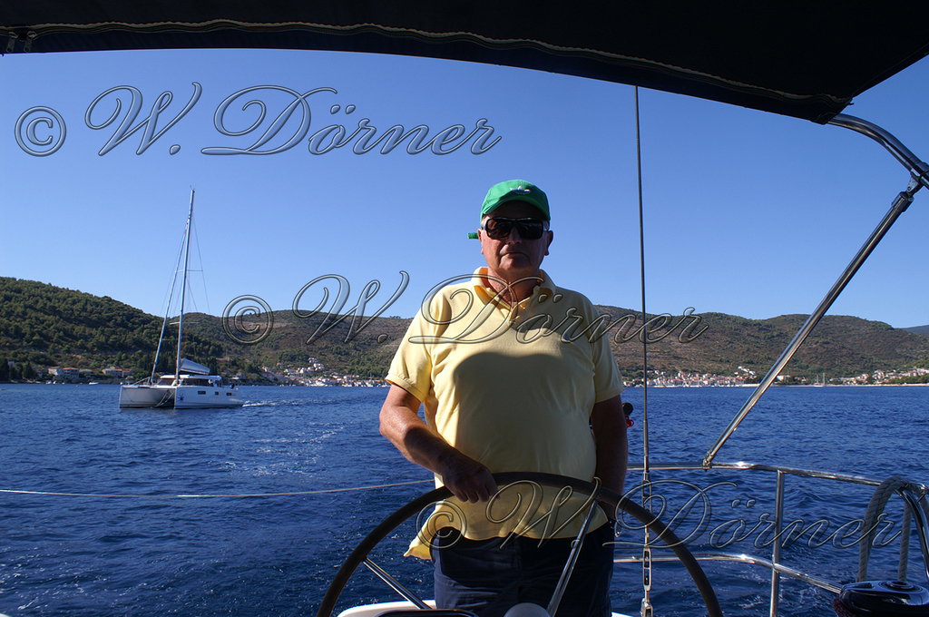 Mittwoch, wieder fast kein Wind W 1-2 Bft. blauer Himmel, verlassen wir den Hafen und fahren zur Insel Solta. In der Bucht Livka legen wir eine Schwimmpause ein. Danach fahren wir nach LUKA auf der Insel Milna. Der Hafen ist wieder sehr voll und wir müssen uns über Funk anmelden. Die Häfen sind in Kroatien alle überfüllt weil die politische Lage der Türkei alle Charterfirmen verjagt hat. Im Hafen haben wir dann noch einen schönen Platz bekommen und wir bekommen sofort eine Menge Besuch von vielen Katzen.