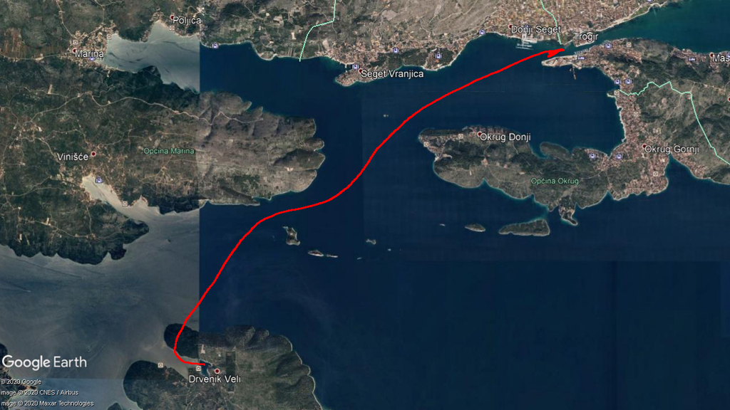 sich wie Flaute an. Wir verlassen den Hafen und fahren nach Trogir zurück. Im Hafen suchten wir noch nach dem Schiff mit dem wir uns im Sturm berührt hatten. Es war aber nur eine leicht verbogene