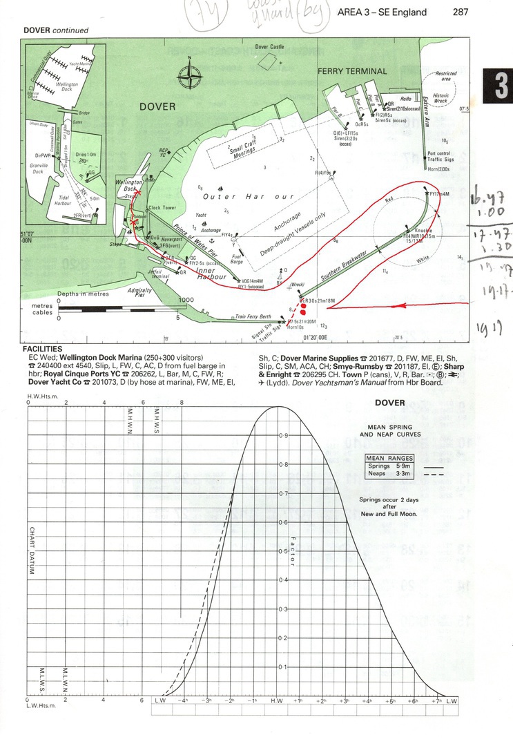 Sonntag den 10.07.1977 1045 Uhr verlassen wir den Hafen von Dover in Richtung Newhaven. Vorher haben wir um 0630 Uhr das Dock verlassen. Bei günstiger Windrichtung und Stärke läuft das Schiff sehr gut. Wind NNE 5-6 später abflauend auf 3-2 Bft. 1300 Uhr Leuchturm Dungeness querab. 1900 Uhr verlässt uns der Wind und wir starten den Einzylinder. 2000 Uhr legen wir in Newhaven an. Distanz 53 sm.