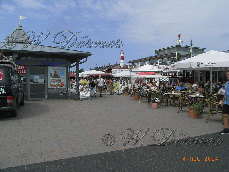 Samstag den 2.8. um 09:30 Uhr verlassen wir wieder die Insel und steuern die Insel Sylt an. Obwohl die Entfernung Luftlinie kurz ist müssen wir einen beträchtlichen Umweg fahren und kommen um 16:00 Uhr in Hörnum an. Im Vortrapptief fährt man ganz dicht an den Robbenbänken vorbei. Die Robben sind jetzt auch wieder zahlreicher vertreten als noch vor 25 Jahren. Das Hafengelände ist voll von Verkaufs- und Fressbuden und eine Band spielt bis spät in die Nacht Musik. Es ist halt "Hafenfest". Zum Abschluß gibt es am kommenden Abend ein großes Feuerwerk von der Kaimauer.
