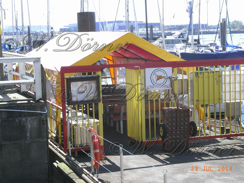 Wir kommen mit dem Rest vom Strom am Montag den 21.7. um 22:00 Uhr an. Für die Strecke haben wir 10 Stunden gebraucht. Wir übernachten wieder im Amerika Hafen. Dort hat der Cuxhavener Yachtclub www.LCF-CUXHAVEN.de einen Steg. Es gibt keinen Hafenmeister, das Übernachtungsgeld 1,00€ /m wird mit dem ausgefüllten Zettel in eine Box hinterlegt. Hier hängt auch der Schlüssel für das nur wenige Meter entfernte Clubhaus mit Aufenthaltsraum, Bar mit Getränken und Duschen. Die entnommenen gekühlten Getränke aus dem Kühlschrank bitte wieder auffüllen. Die überaus günstigen Preise stehen auf einem ausgelegten Zettel mit der Bitte das Geld in die bereitgestellte Kasse zu legen. Es gibt auch noch eine große Chronik des Club´s mit Bildern im Ordner. Alles in Allem ein sehr schönes Clubhaus und eine große Geste des Vereins an die Segler die hoffentlich das Angebot zu schätzen wissen und den Verein nicht bescheißen. Als Wertschätzung habe ich eine Clubfahne mit Dankschreiben hinterlegt.